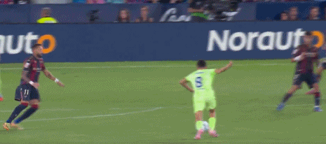 第45+6分钟,巴尔德手球送点,莫拉莱斯主罚命中,巴萨0-2