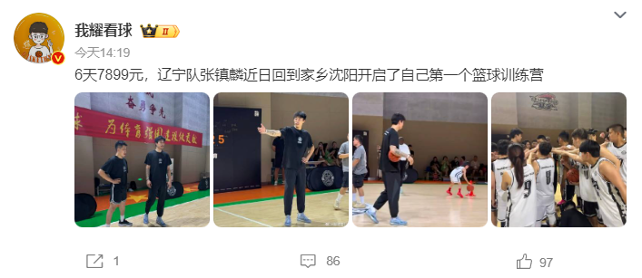 媒体人也透露,张镇麟已经从海外康复训练回国,他在辽宁举办了个人首个训练营,6天价格7899元,训练营聘请了两位有着NBA和CBA职业背景的训练师Coach Gift和Coach Russell,还有两位特约教练OJ-梅奥、郭凯伦